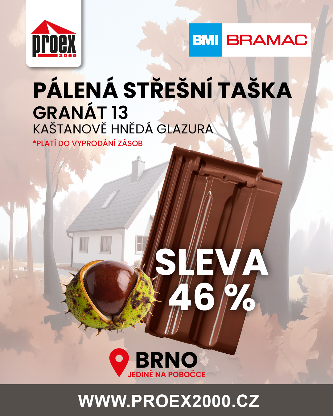 Brno: Pálená střešní taška Bramac: Granát 13* nyní se slevou 46 %