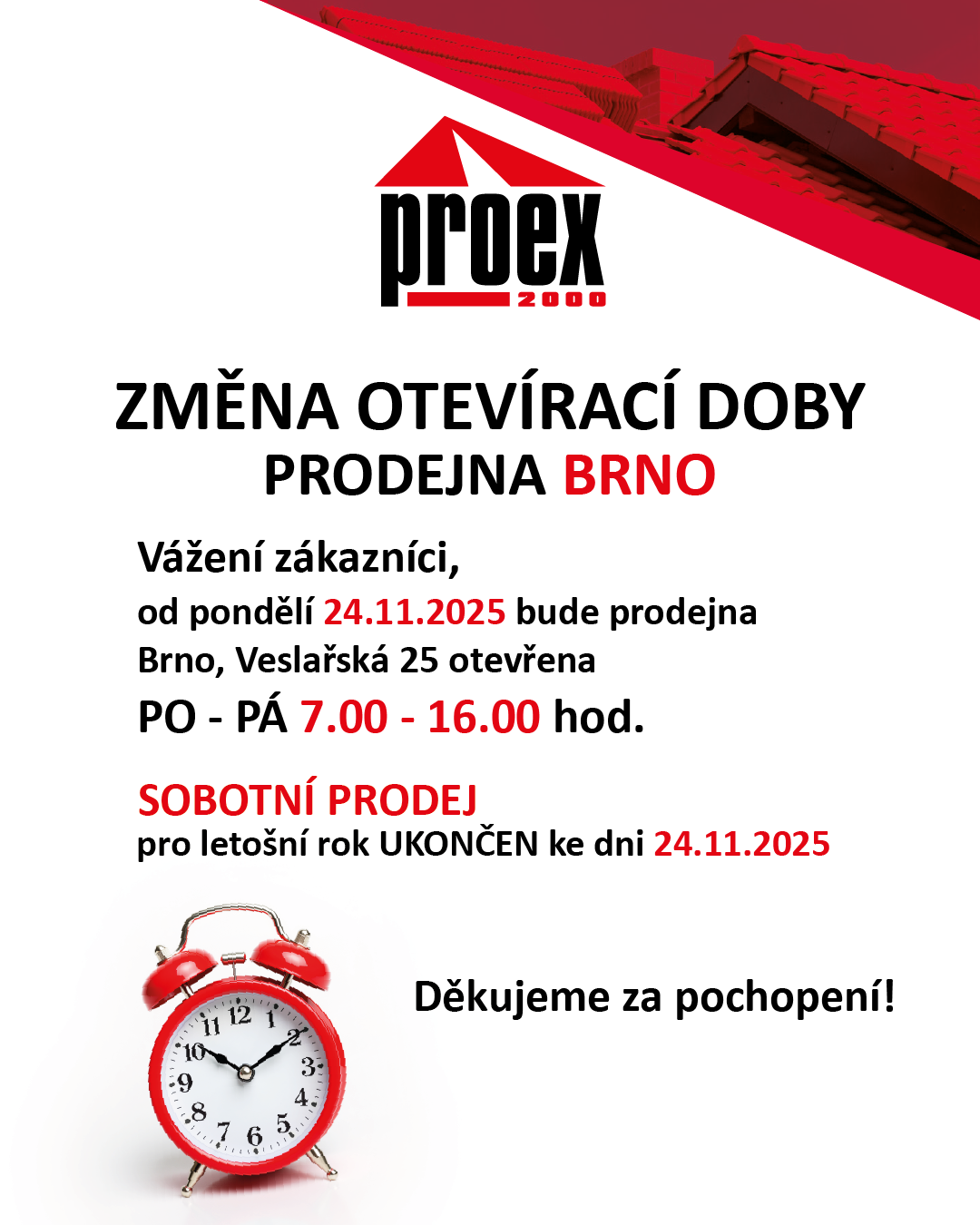 Prodejna Brno – Změna otevírací doby
