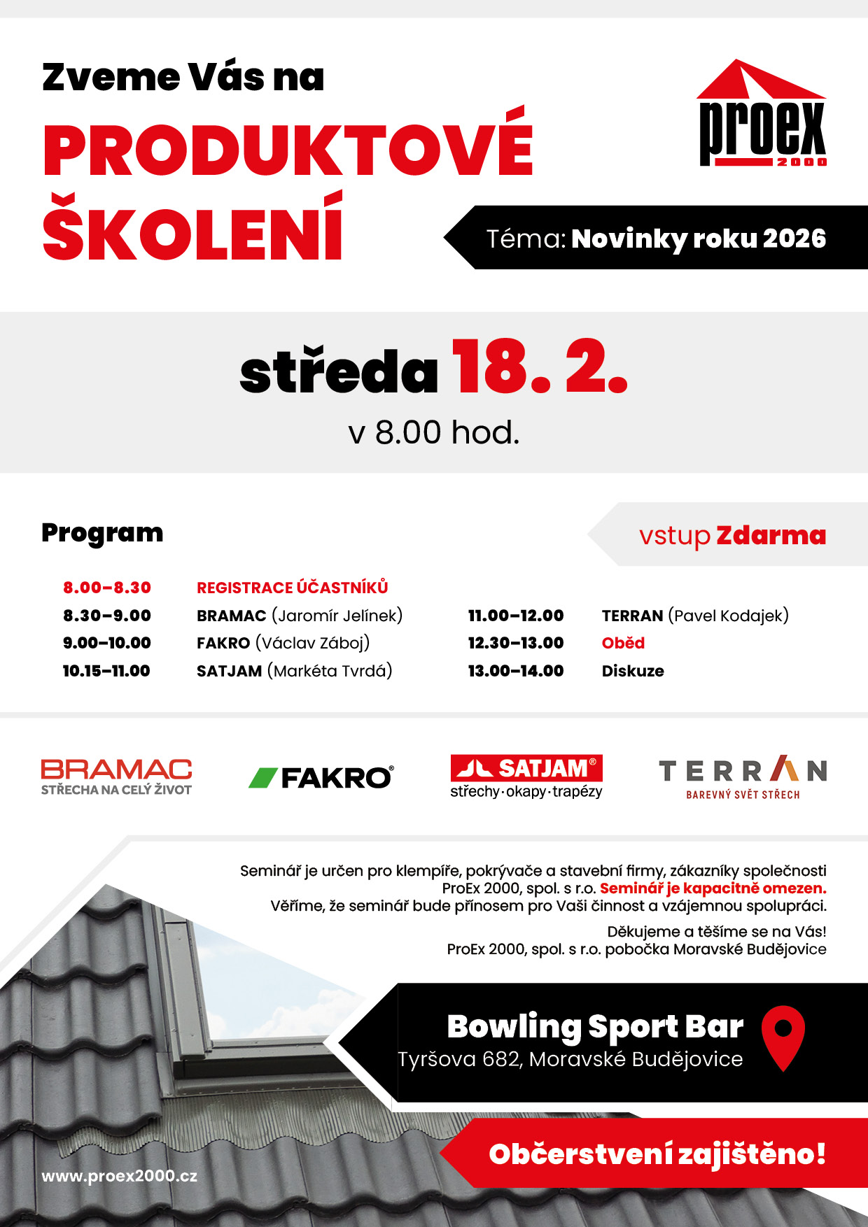 Zveme vás na produktové školení společnosti ProEx 2000, zaměřené na novinky roku 2026.