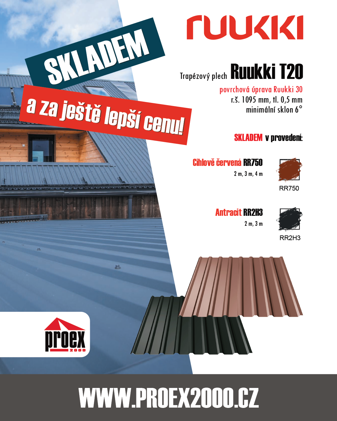 Skvělé zprávy! Máme naskladněno! Oblíbený trapézový plech RUUKKI T20 nyní pořídíte v Brně za ještě lepší cenu!