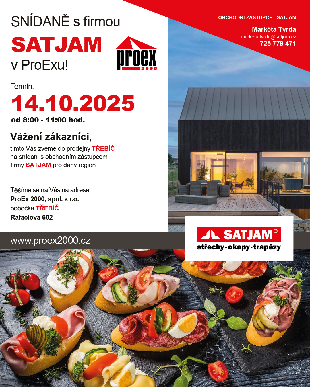 V úterý 14. října se na vás těšíme v Třebíči, kde pořádáme tradiční snídani se zástupci značky Satjam.
