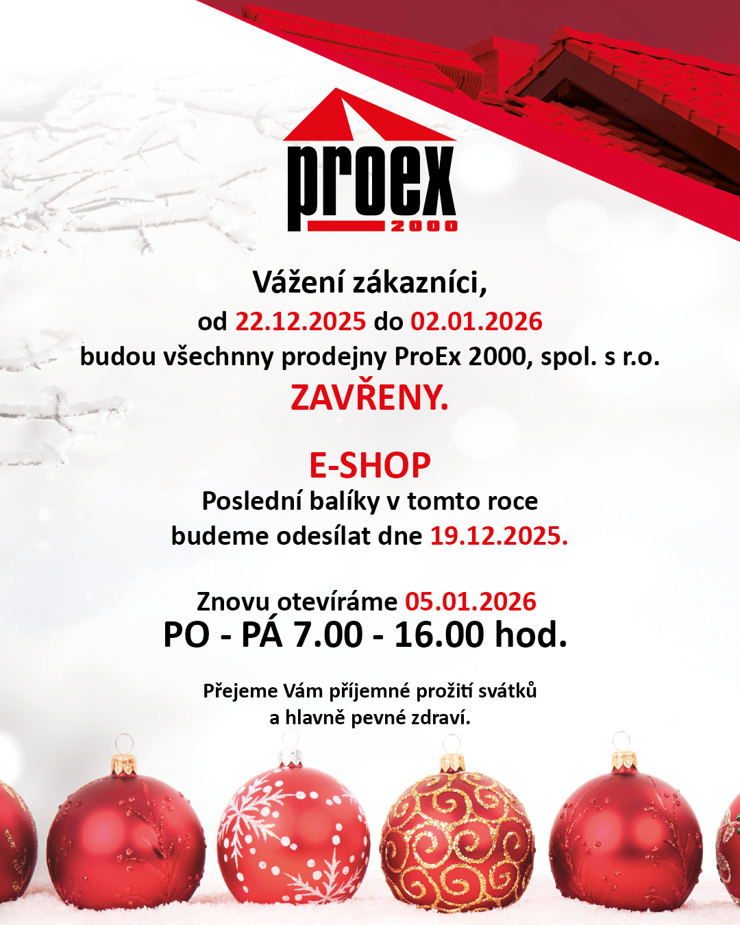 Vážení zákazníci, od 24. 11. 2025 dochází na brněnské prodejně ProEx 2000 k úpravě otevírací doby. Nová provozní…