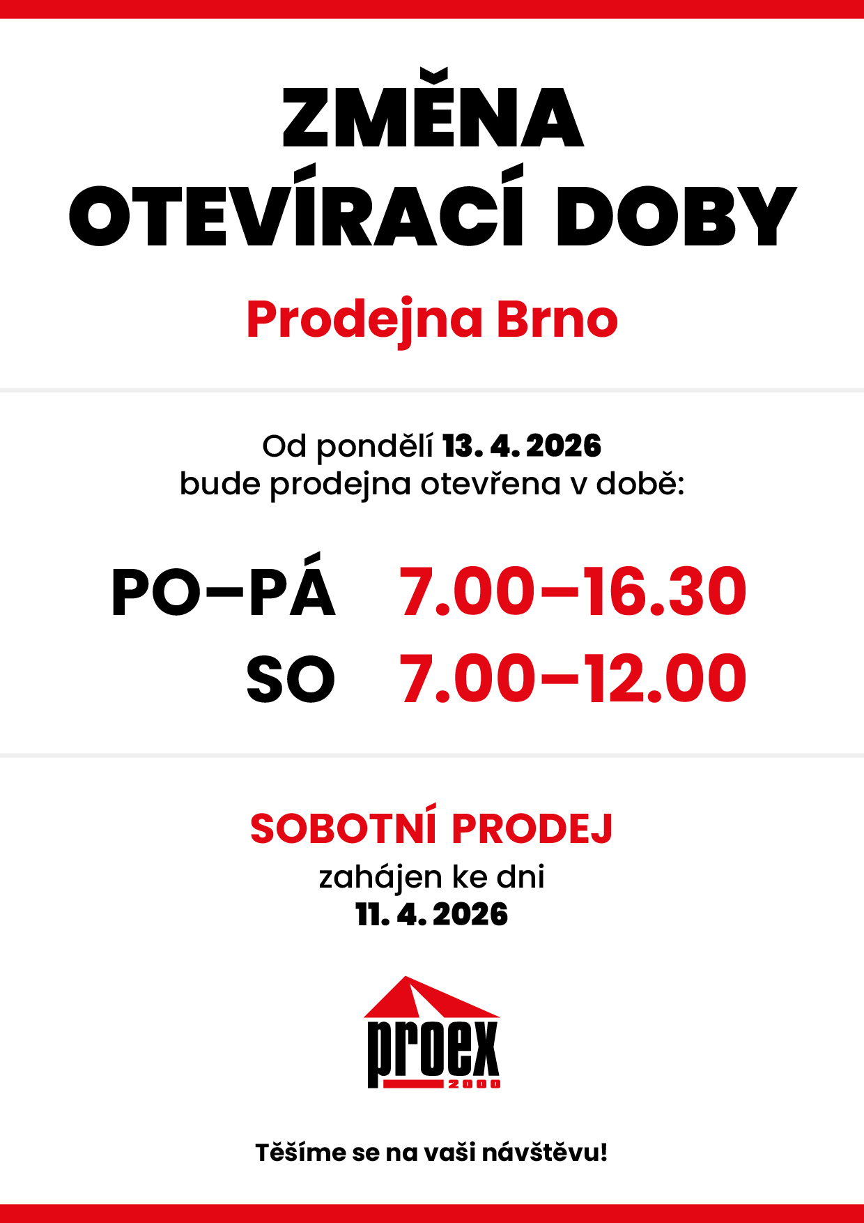 Změna otevírací doby – Prodejna Brno